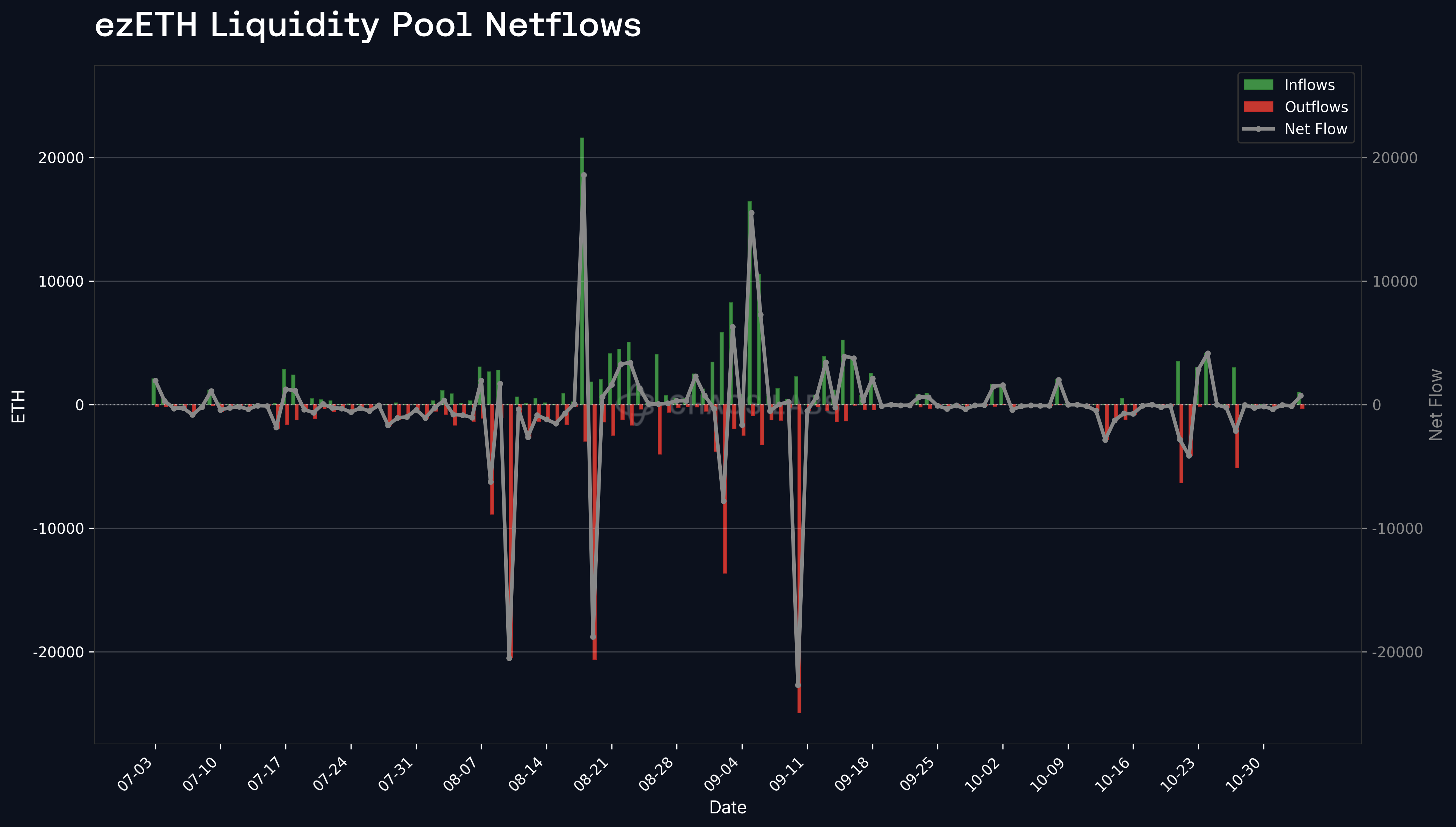 During the mid-October market flash crash, ezETH experienced a brief spike in outflows, quickly followed by renewed inflows. Throughout the month, TVL remained stable at approximately 320k ETH for ezETH.